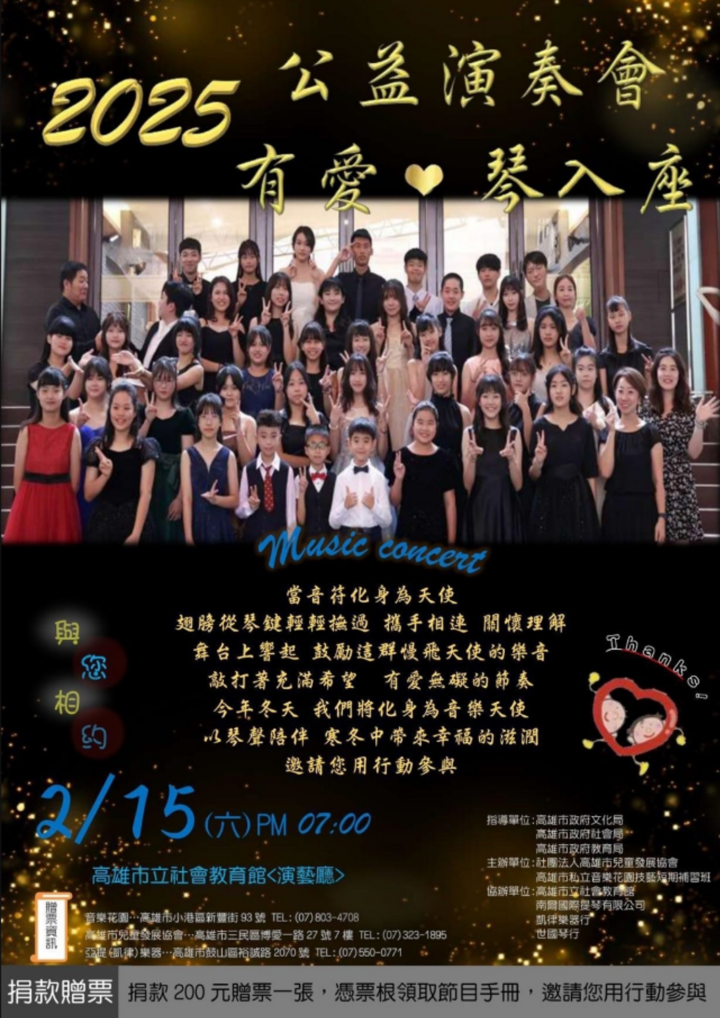 🎟 捐款 200元 即可獲得音樂會入場券一張(數量有限,請提前索票!)
